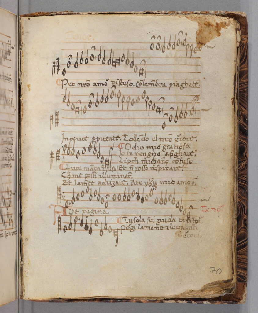 Tra i numerosi libri di laudi, conservati in genere senza musica, abbiamo l’eccezione del codice di Cortona 91 (fine XIII sec.) e del Laudario Magliabechiano B.R. 18 (metà del XIV sec) in cui vi sono le più antiche e preziose testimonianze musicali di una vasta tradizione. Questa tradizione era affidata inizialmente solo alla memoria degli esecutori, custodi di un ricchissimo repertorio di cui, purtroppo, rimane solo la parte trasmessa dai codici.