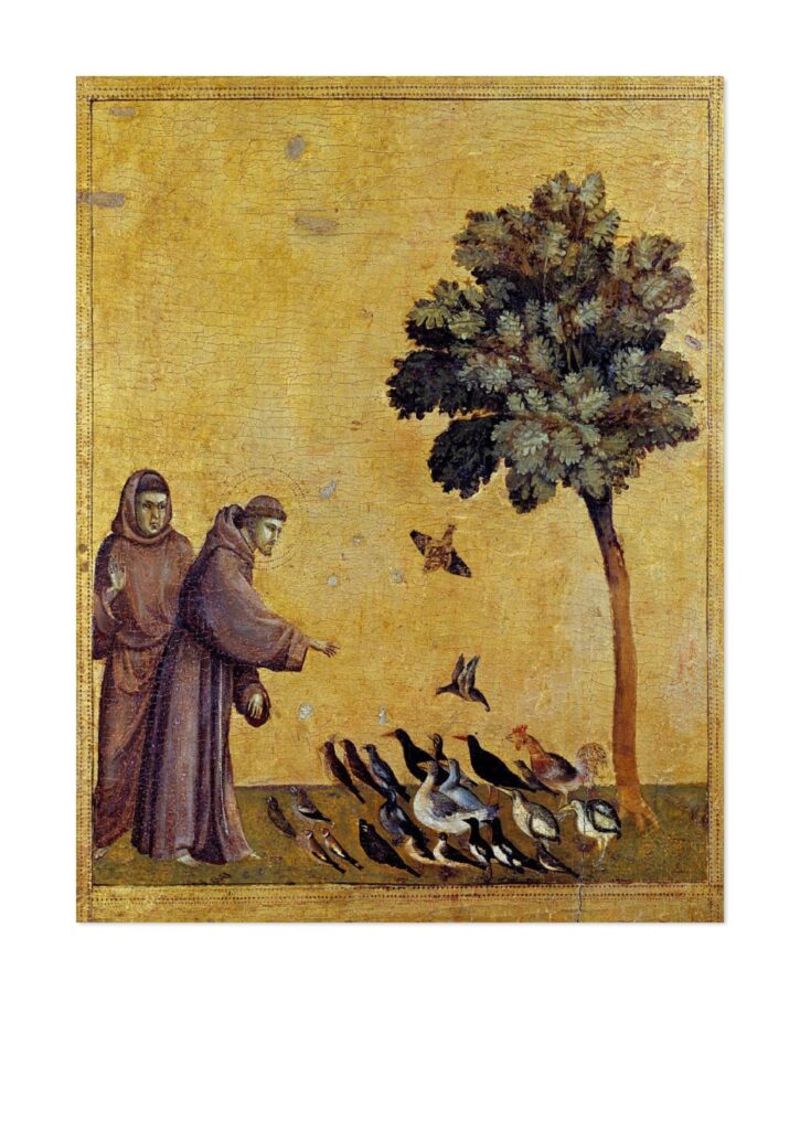 …Voglio quindi, a lode di lui e a mia consolazione e per l’edificazione del prossimo, comporre una nuova lauda del Signore riguardo alle sue creature. Ogni giorno usiamo delle creature e senza di loro non possiamo vivere […]. E postosi a sedere, si concentrò a riflettere e poi disse: Altissimo, onnipotente, bon Segnore. E vi compose una melodia e la insegnò ai suoi compagni perché la ripetessero. (Compilazione di Assisi, cap. 83)